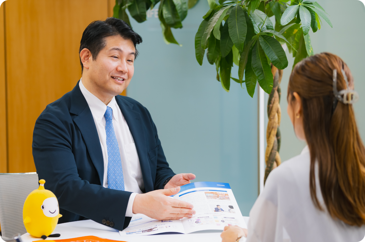 ご相談が多いのは、ライフステ―ジ変化のタイミング。結婚や出産、就職、定年退職といった節目ごとに幅広い年代のお客さまがご来店されます。「どこでどれだけお金がかかりそうか」「老後にどれくらい資金が残りそうか」といったライフプランを一緒に確認したうえで、今入っている保障の過不足を確認します。お客さまに心を開いてお話しいただけないと、適切な保険にたどり着けません。そのため、お客さまの話をしっかり傾聴できるスタッフがお客さまの信頼を得て、結果的に実績につながっていきます。